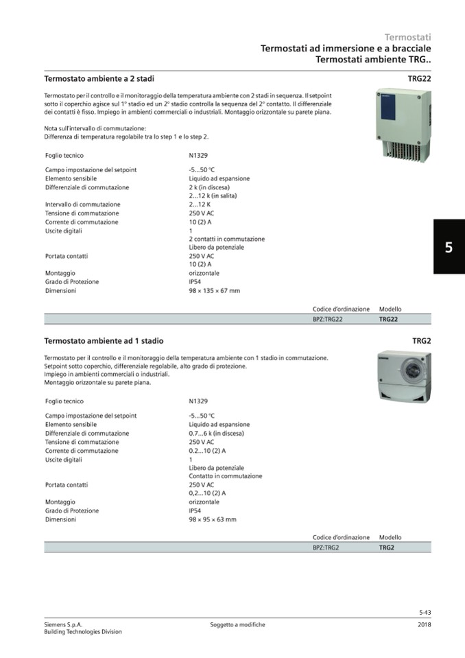 Termostato ambiente a 2 stadi