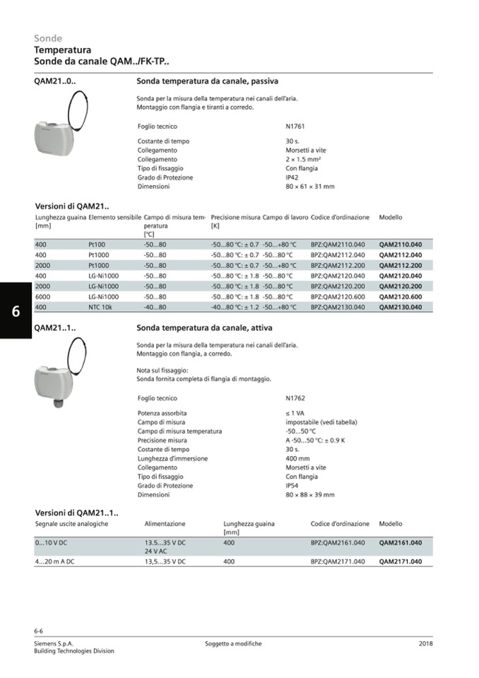 Sonda temperatura da canale, passiva