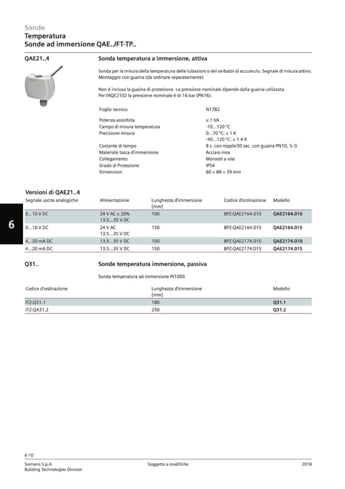 Sonda temperatura a immersione, attiva