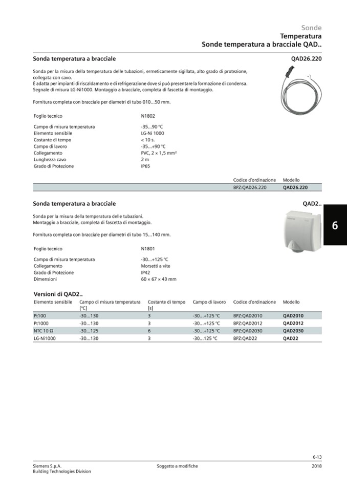 Sonda per la misura della temperatura delle tubazioni, ermeticamente sigillata, alto grado di protezione,