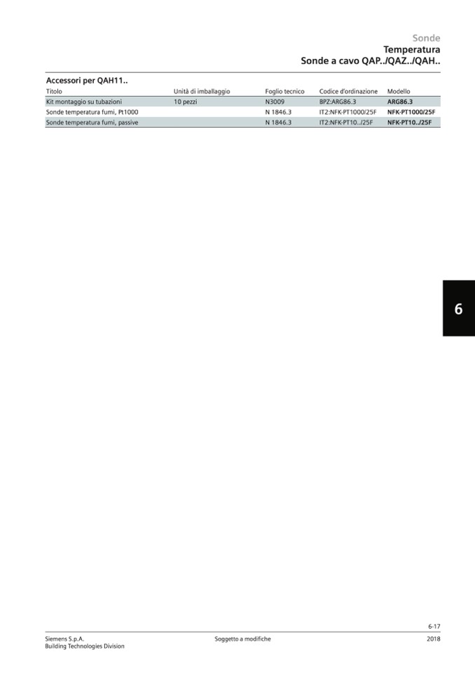 Sonde temperatura fumi, Pt1000