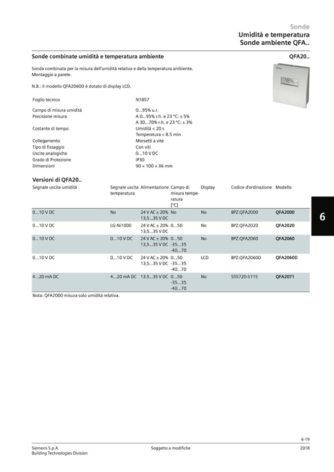 Nota: QFA2000 misura solo umidità relativa.