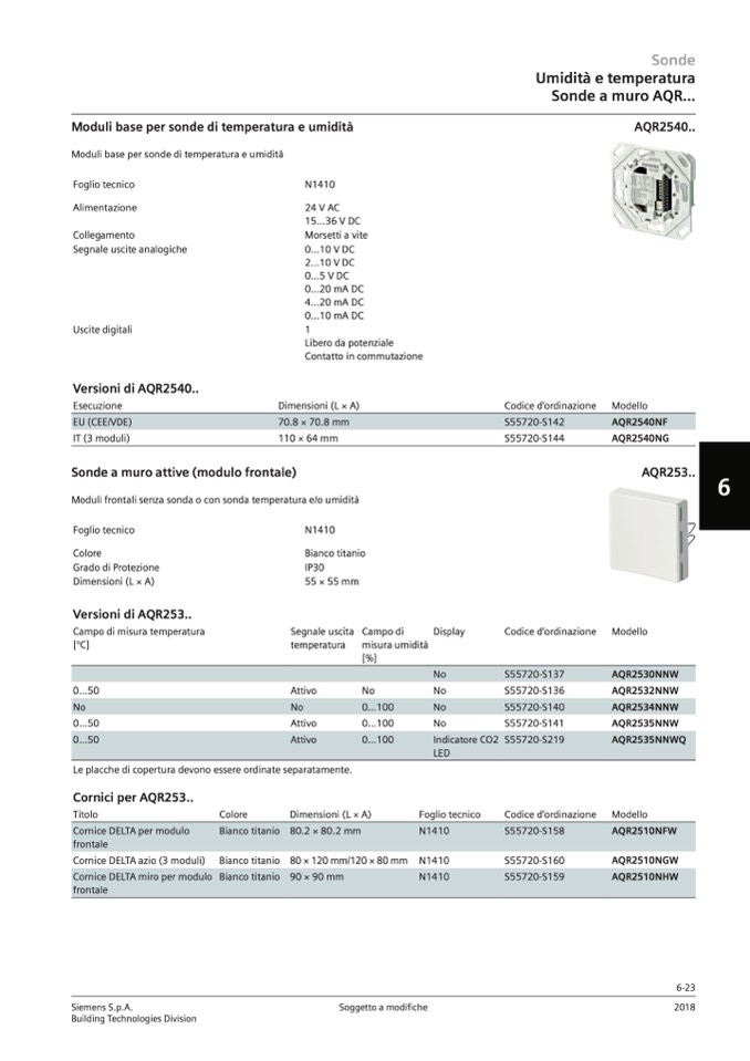 Moduli frontali senza sonda o con sonda temperatura e/o umidità