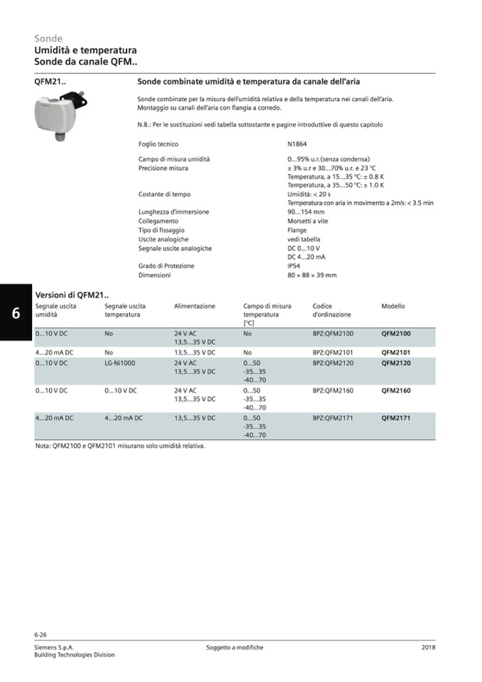 Nota: QFM2100 e QFM2101 misurano solo umidit