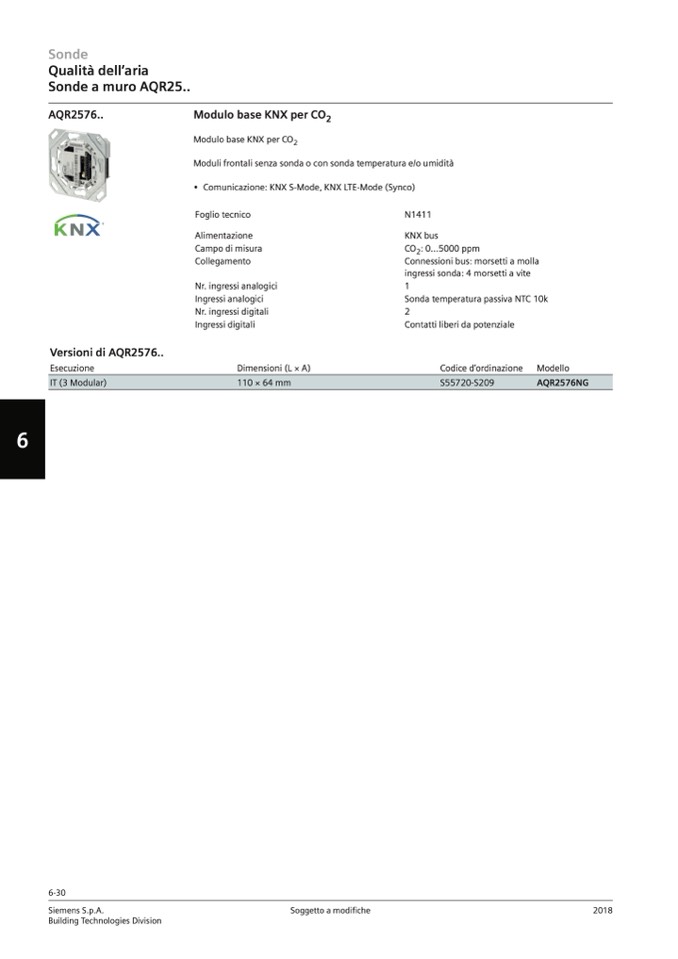 • Comunicazione: KNX S-Mode, KNX LTE-Mode (Synco)