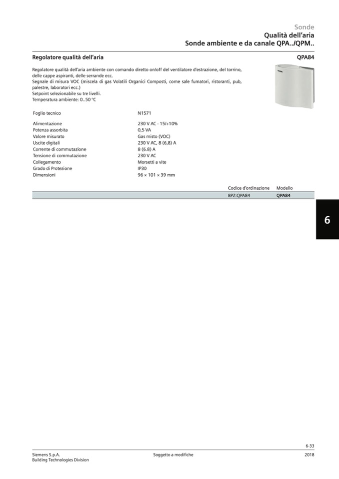 Regolatore qualità dell’aria ambiente con comando diretto on/off del ventilatore d’estrazione, del torrino,