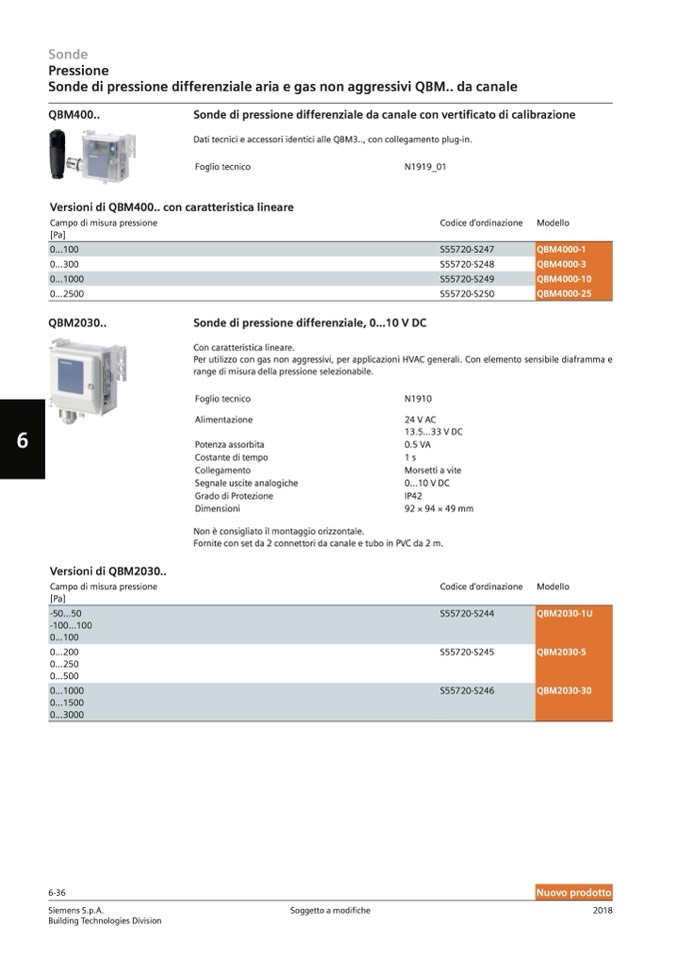 Sonde di pressione differenziale, 0...10 V DC