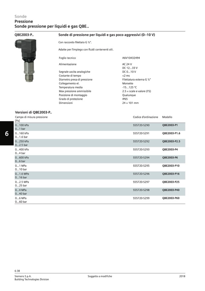 Sonde di pressione per liquidi e gas poco aggressivi (0--10 V)