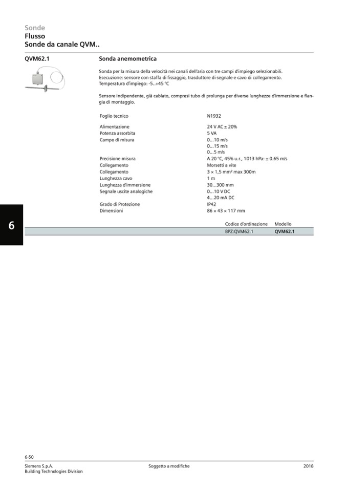 Sonda per la misura della velocità nei canali dell’aria con tre campi d’impiego selezionabili.