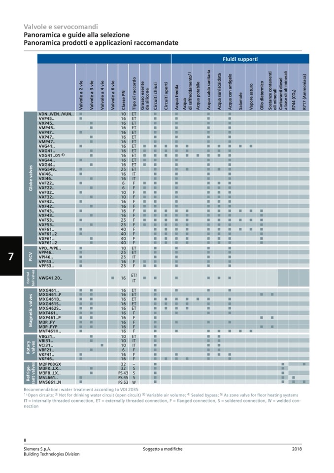 IT = internally threaded connection, ET = externally threaded connection, F = flanged connection, S = soldered connection, W = welded con-