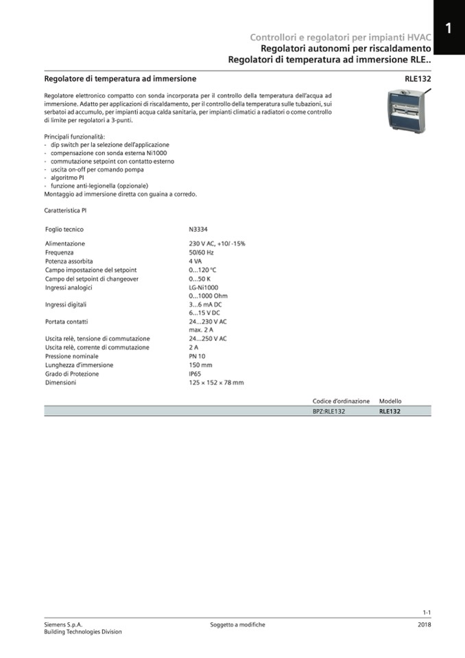 immersione. Adatto per applicazioni di riscaldamento, per il controllo della temperatura sulle tubazioni, sui