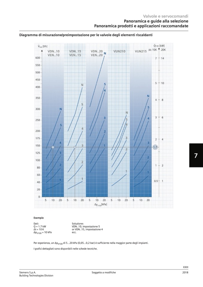 Diagramma di misurazione/preimpostazione per le valvole degli elementi riscaldanti