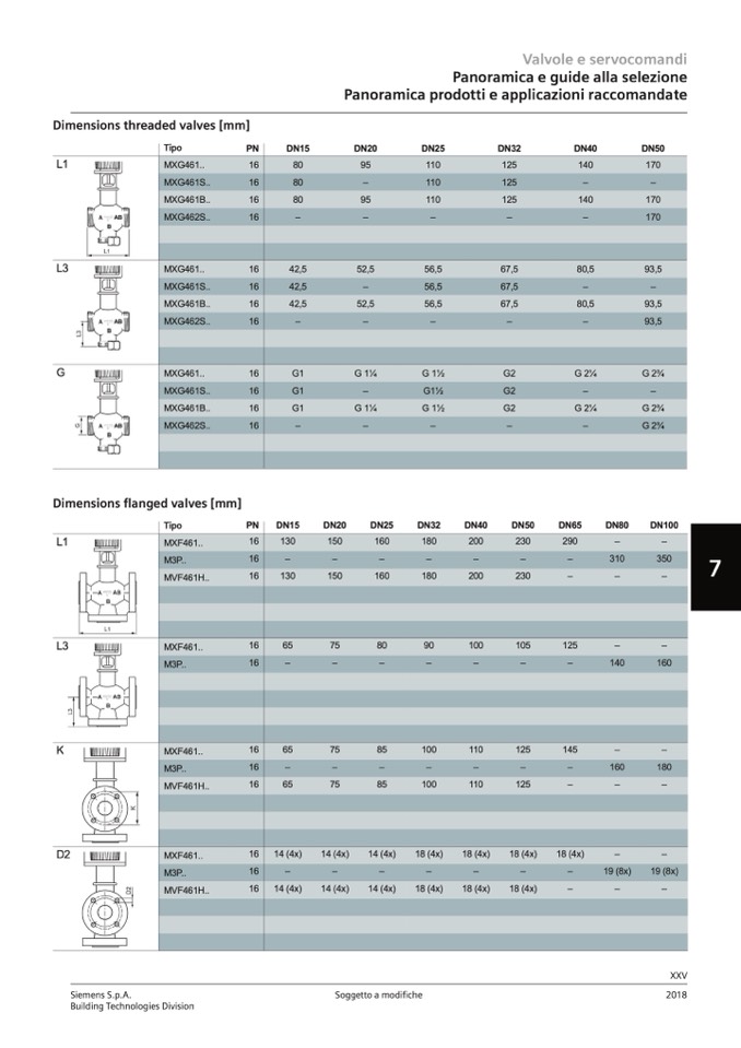 Dimensions flanged valves [mm]