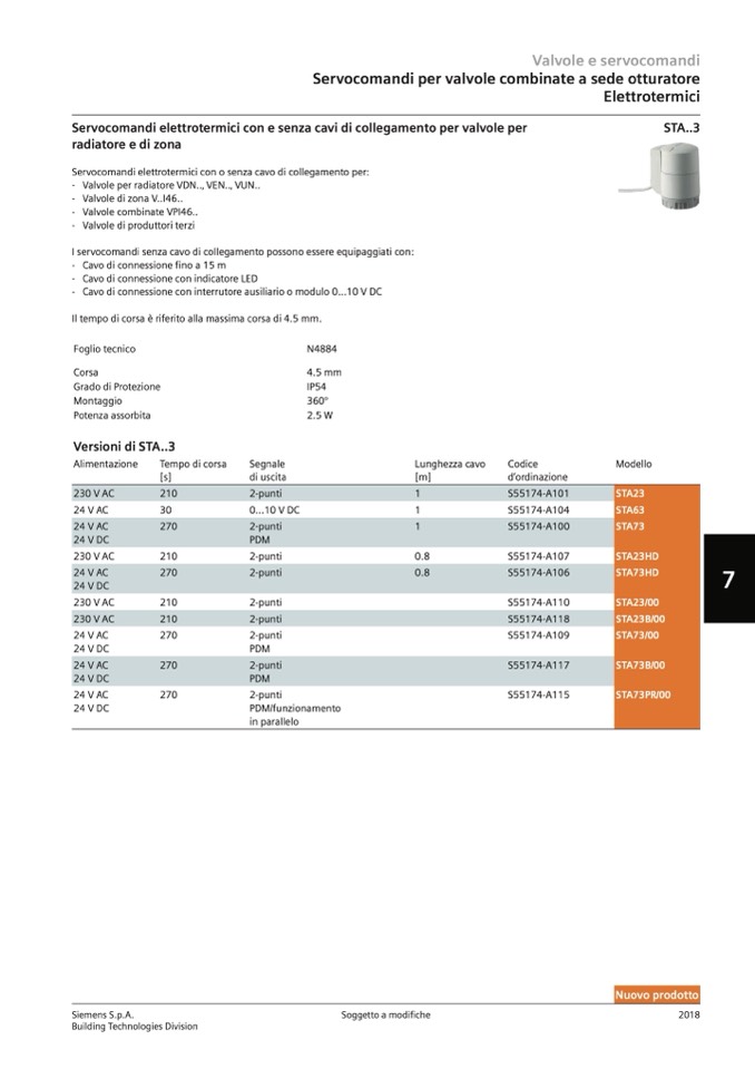Servocomandi elettrotermici con e senza cavi di collegamento per valvole per