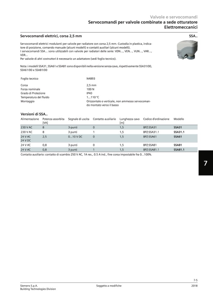 I servocomandi SSA... sono utilizzabili con valvole per radiatori delle serie: VDN..., VEN..., VUN..., VAR...,