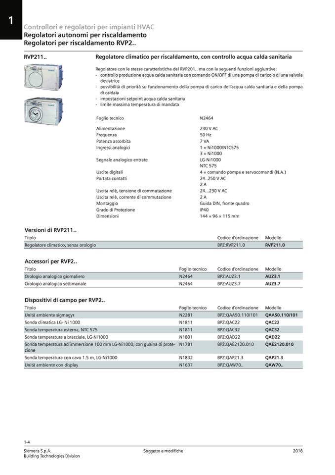 Regolatore con le stesse caratteristiche del RVP201.. ma con le seguenti funzioni aggiuntive: