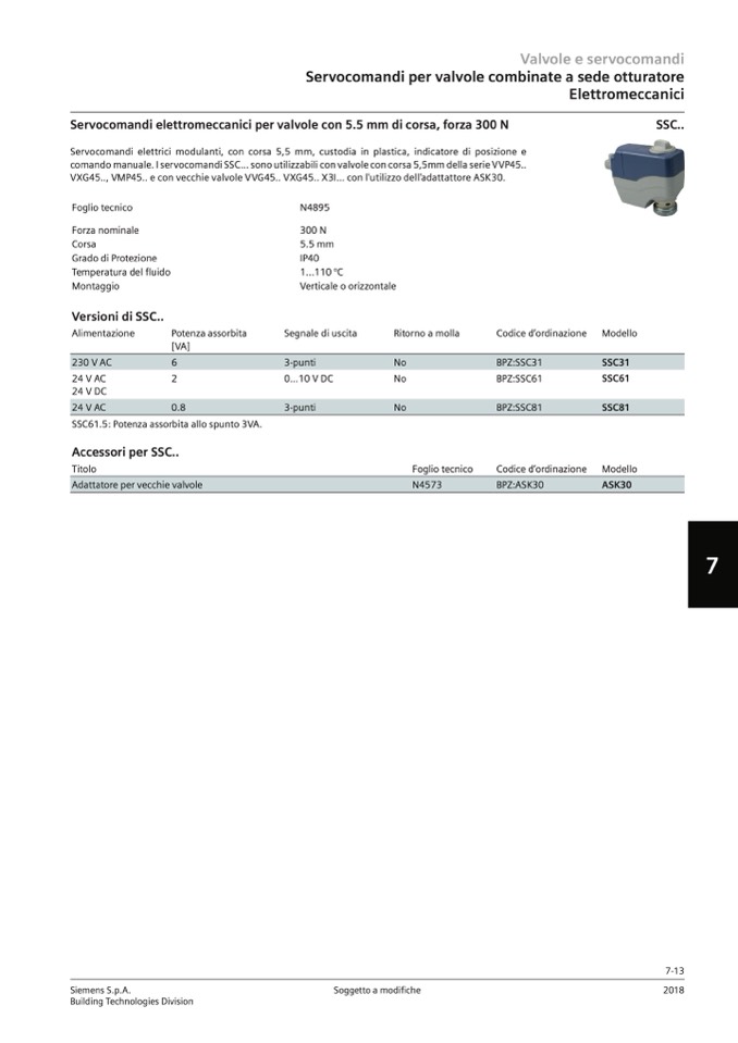 comando manuale. I servocomandi SSC... sono utilizzabili con valvole con corsa 5,5mm della serie VVP45..