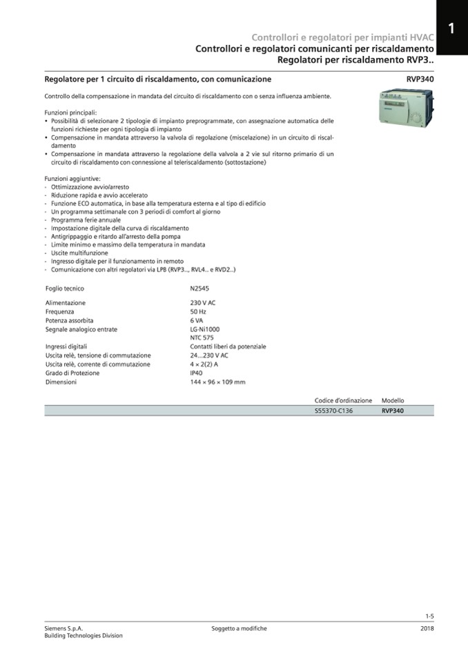 - Comunicazione con altri regolatori via LPB (RVP3.., RVL4.. e RVD2..)