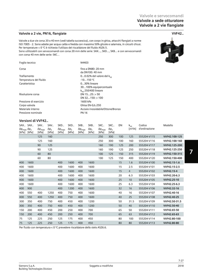 Valvole a due vie corsa 20 o 40 mm (vedi tabella successiva), con corpo in ghisa, attacchi flangiati a norme