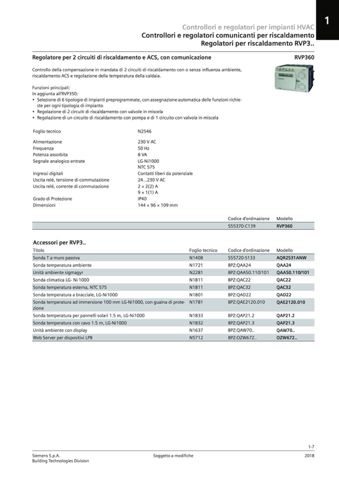 • Regolazione di un circuito di riscaldamento con pompa e di 1 circuito con valvola in miscela