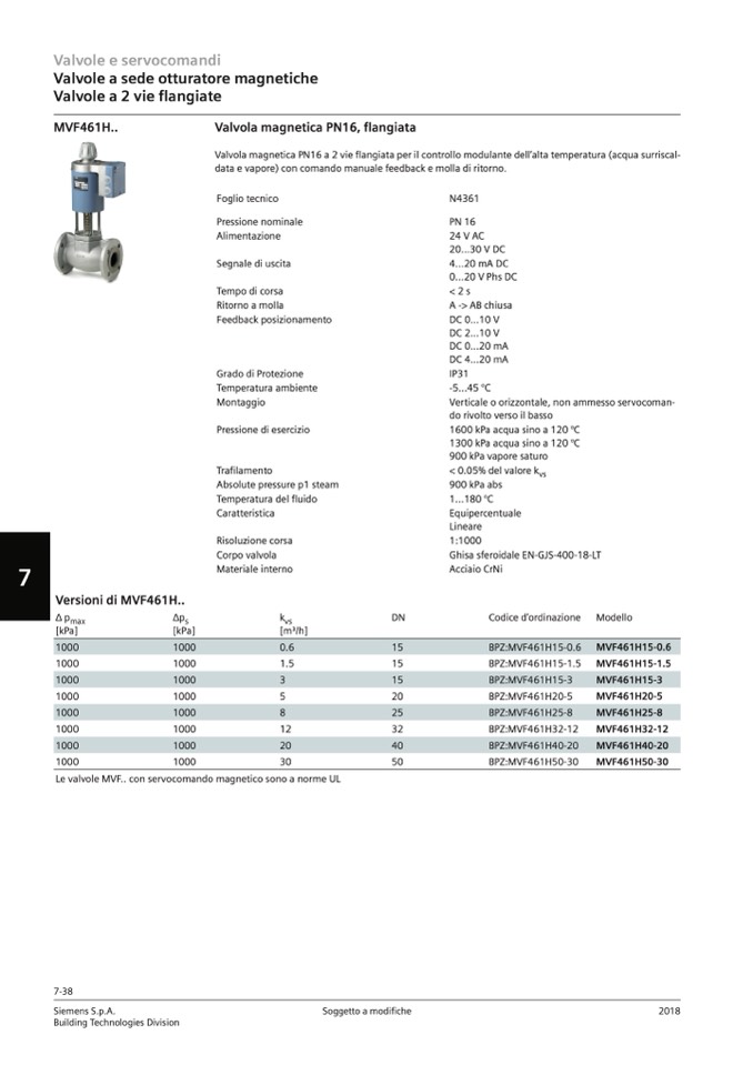 Le valvole MVF.. con servocomando magnetico sono a norme UL