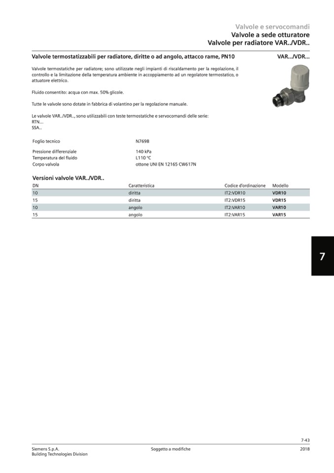 Le valvole VAR../VDR..‚ sono utilizzabili con teste termostatiche e servocomandi delle serie: