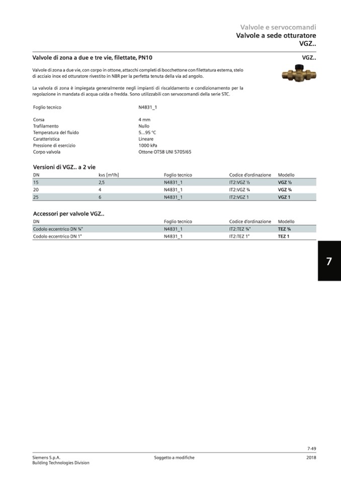 Valvole di zona a due e tre vie‚ filettate‚ PN10