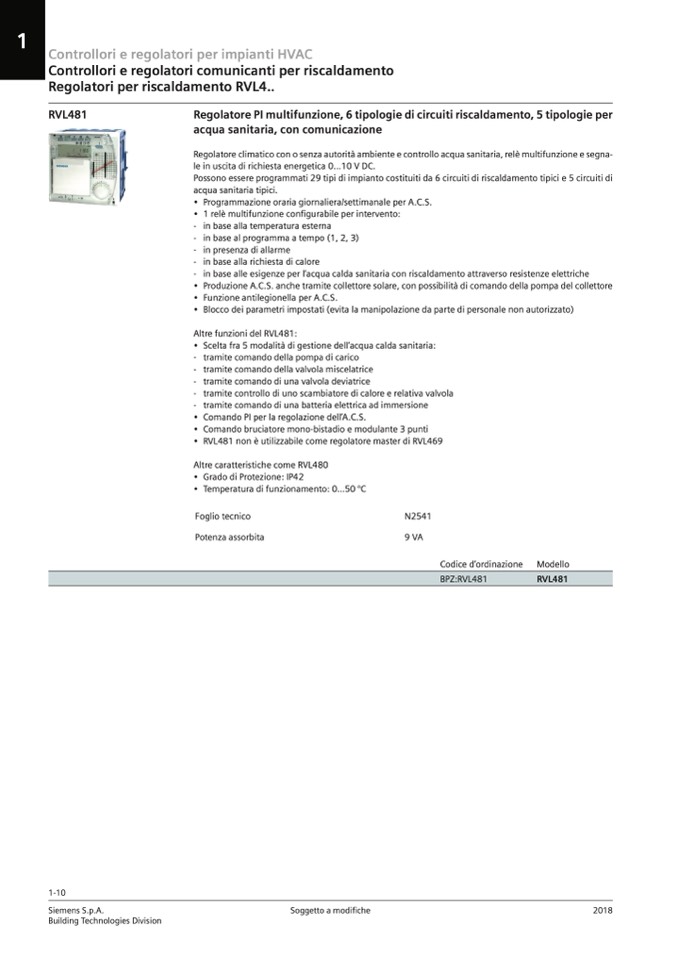 • RVL481 non è utilizzabile come regolatore master di RVL469