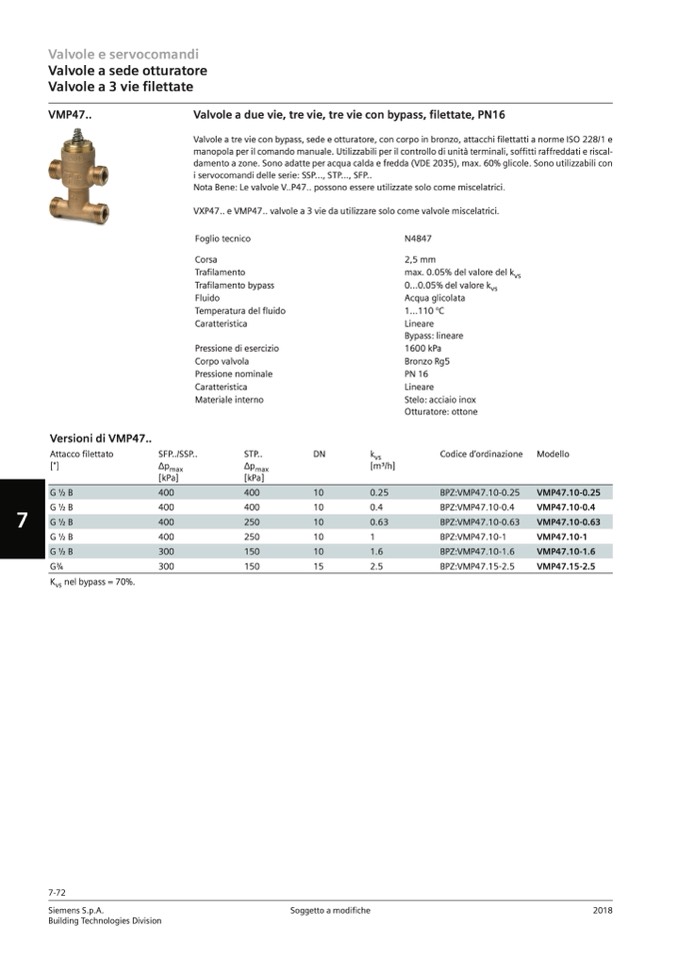 Nota Bene: Le valvole V..P47.. possono essere utilizzate solo come miscelatrici.