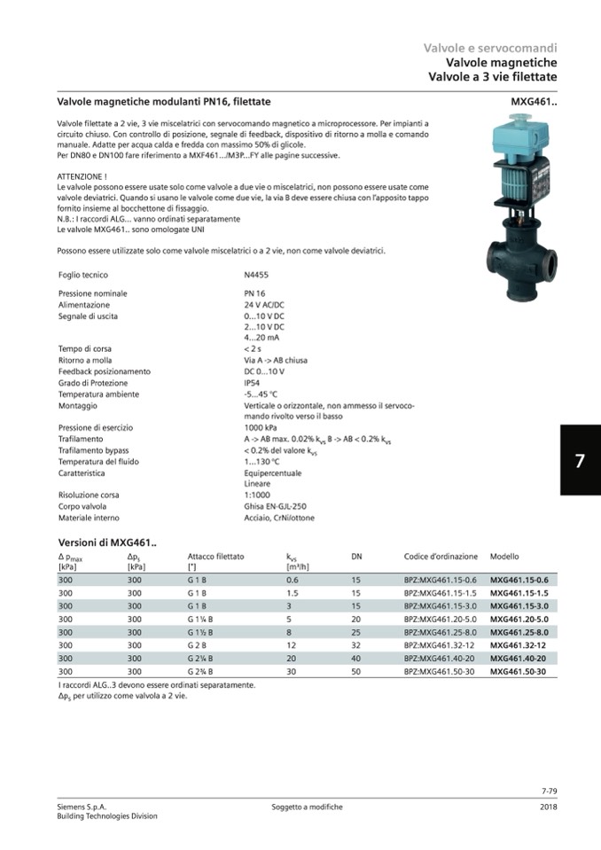 Per DN80 e DN100 fare riferimento a MXF461.../M3P...FY alle pagine successive.