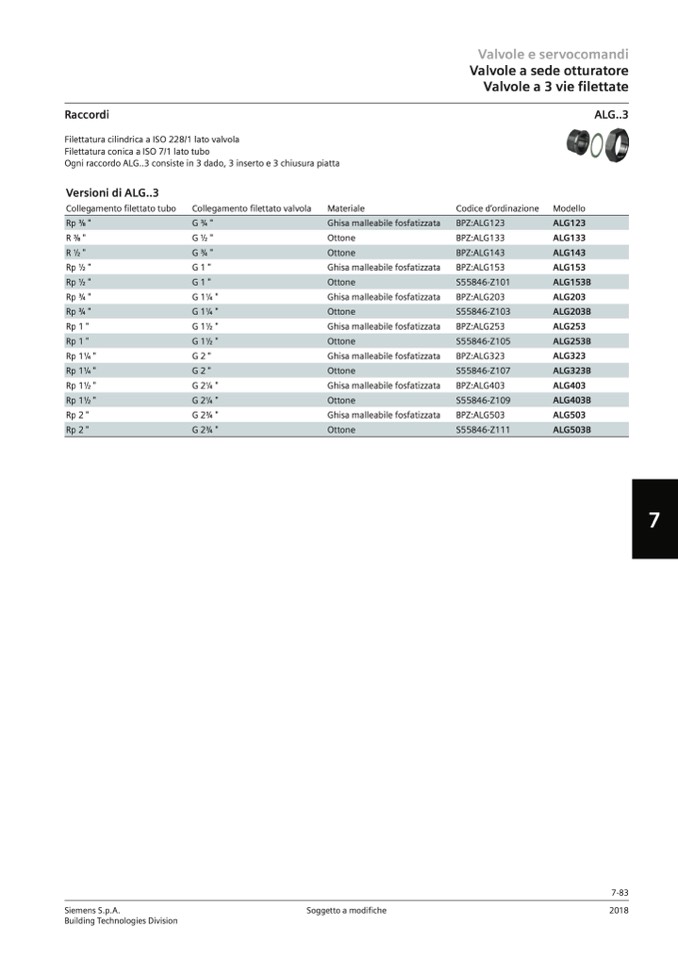 Ogni raccordo ALG..3 consiste in 3 dado, 3 inserto e 3 chiusura piatta