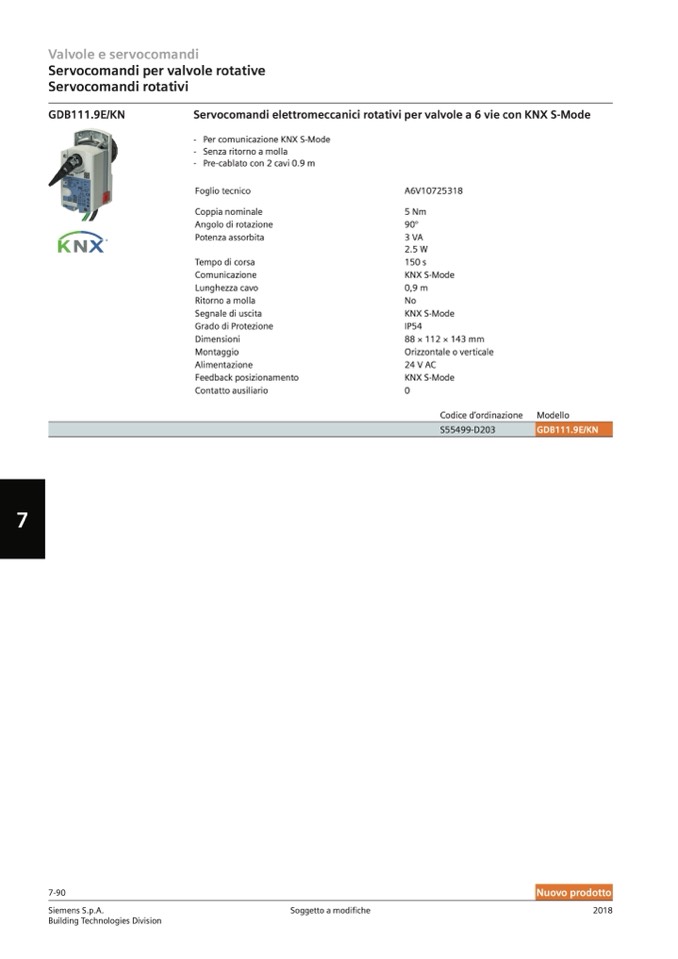 Servocomandi elettromeccanici rotativi per valvole a 6 vie con KNX S-Mode