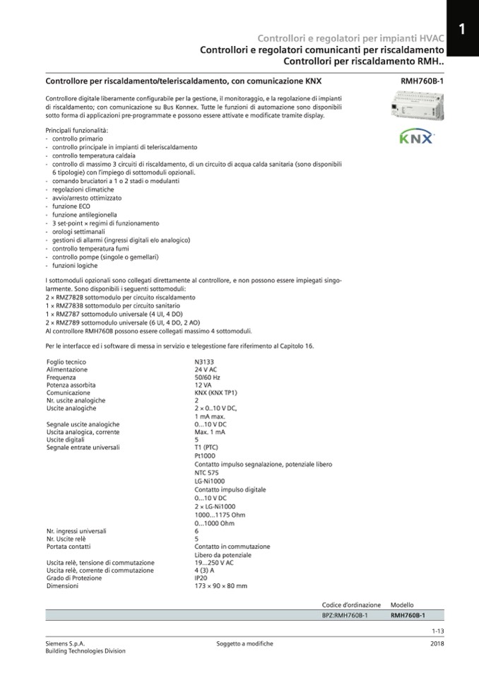 Controllore per riscaldamento/teleriscaldamento, con comunicazione KNX