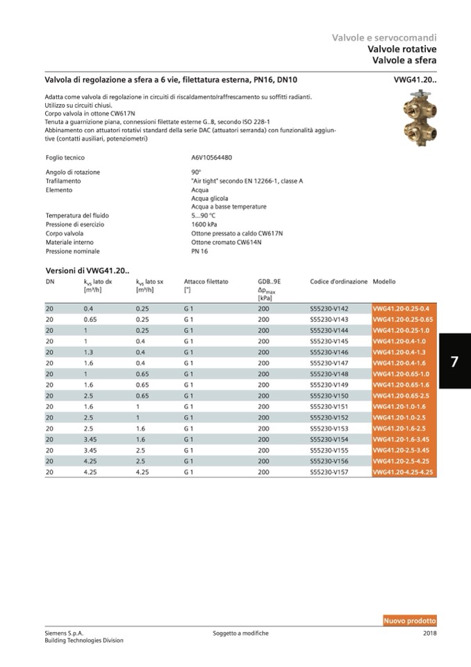 Valvola di regolazione a sfera a 6 vie, filettatura esterna, PN16, DN10