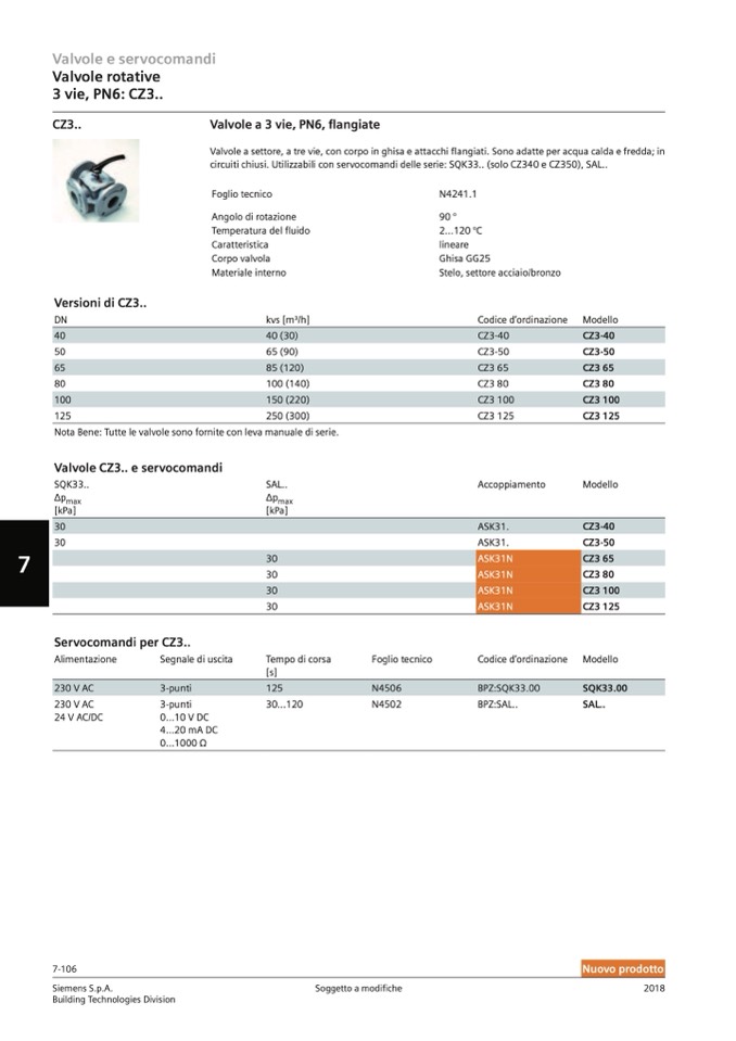 circuiti chiusi. Utilizzabili con servocomandi delle serie: SQK33.. (solo CZ340 e CZ350), SAL..