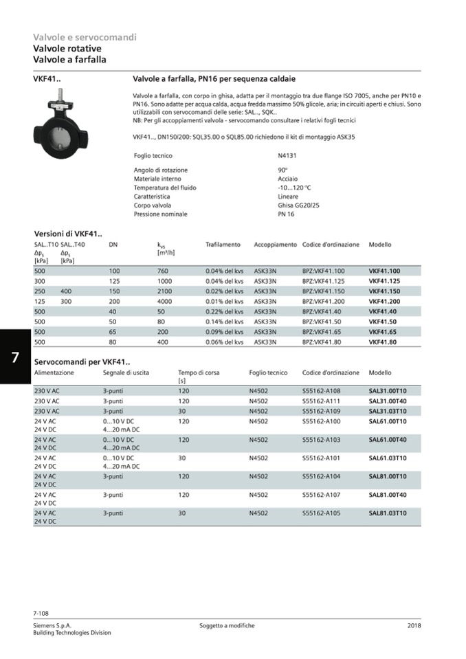 VKF41.., DN150/200: SQL35.00 o SQL85.00 richiedono il kit di montaggio ASK35
