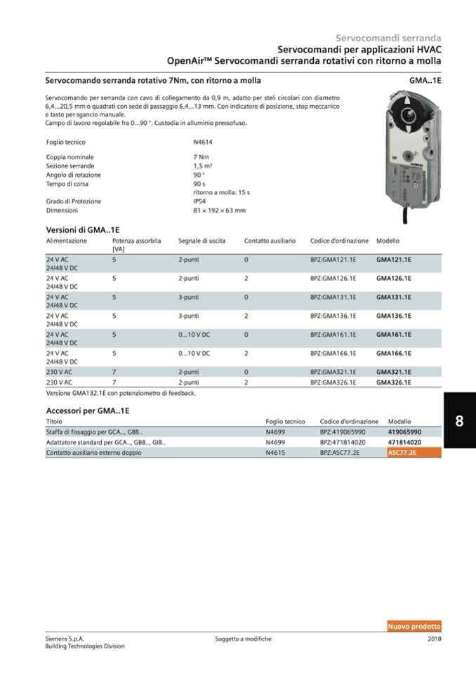 Servocomando serranda rotativo 7Nm, con ritorno a molla