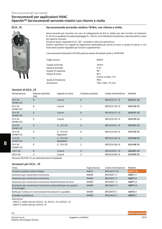 - ASK73.1 valido solo per GCA12..1E, GCA13..1E e GCA32..1E