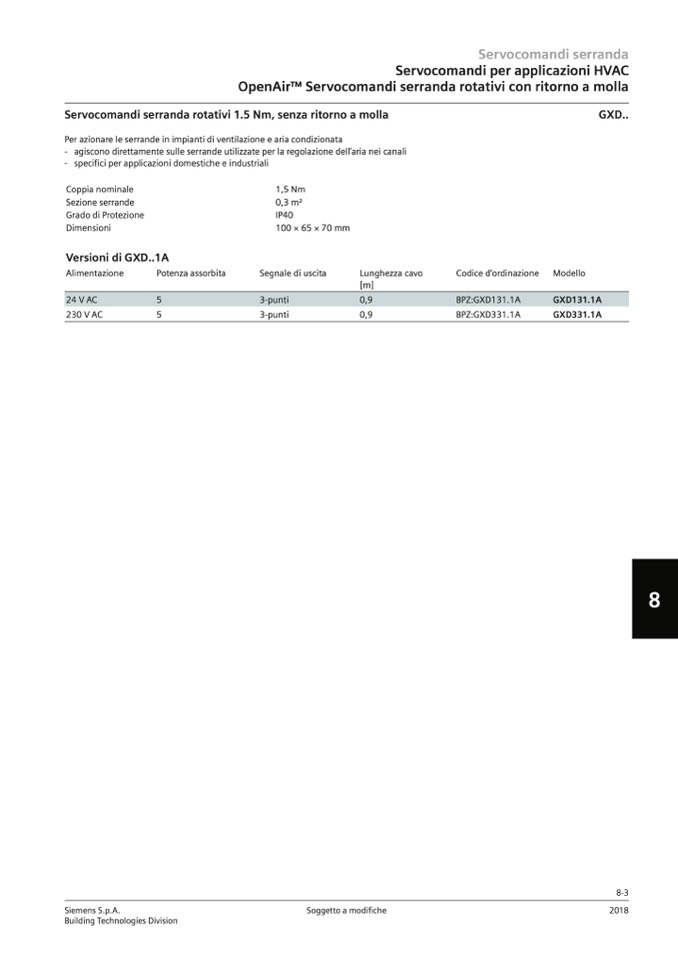 Servocomandi serranda rotativi 1.5 Nm, senza ritorno a molla