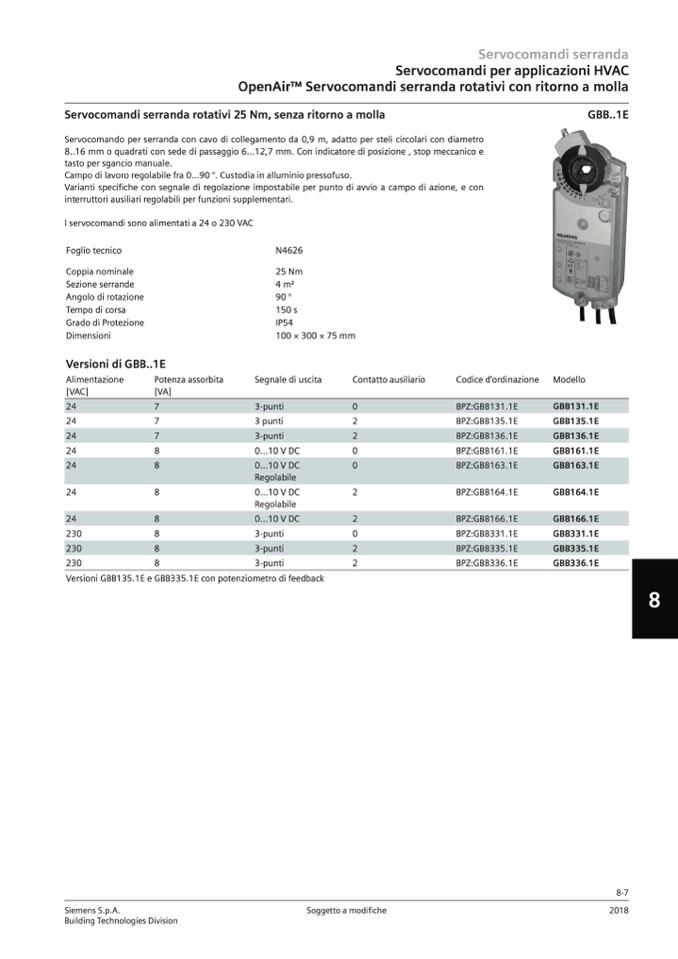 Versioni GBB135.1E e GBB335.1E con potenziometro di feedback
