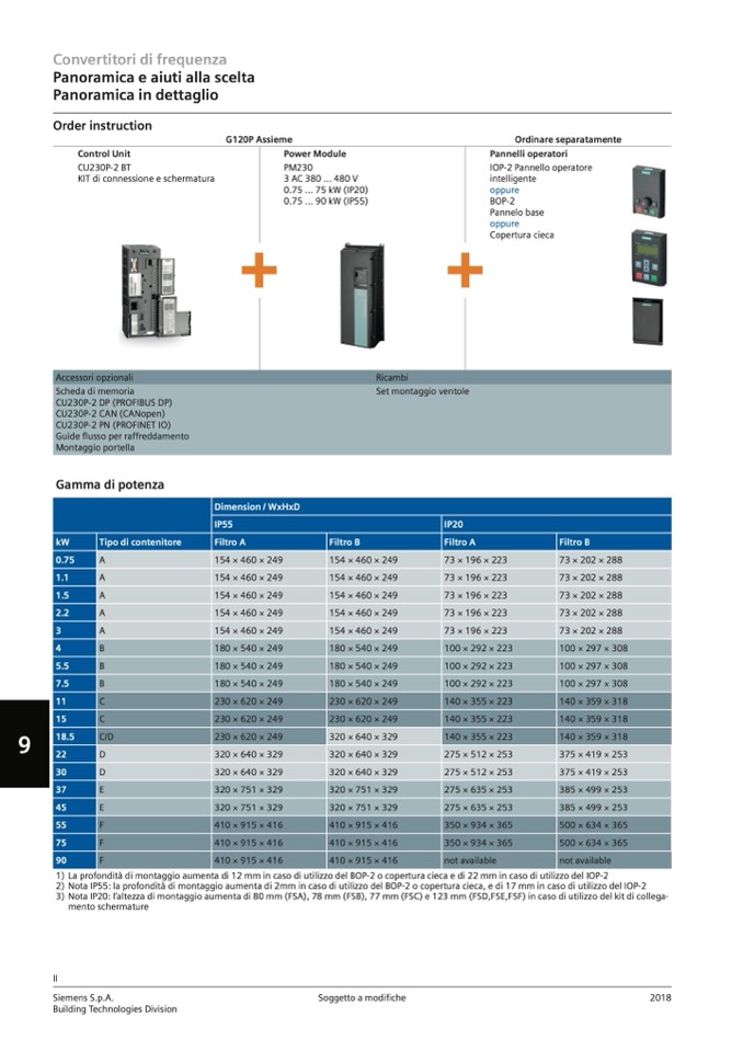 3) Nota IP20: l‘altezza di montaggio aumenta di 80 mm (FSA), 78 mm (FSB), 77 mm (FSC) e 123 mm (FSD,FSE,FSF) in caso di utilizzo del kit di collega-