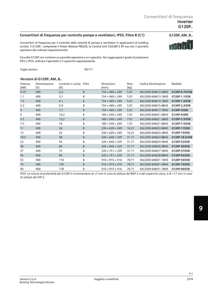 control. Il G120P.. comprende il Power Module PM230, la Control Unit CU230P-2 BT ma non il pannello