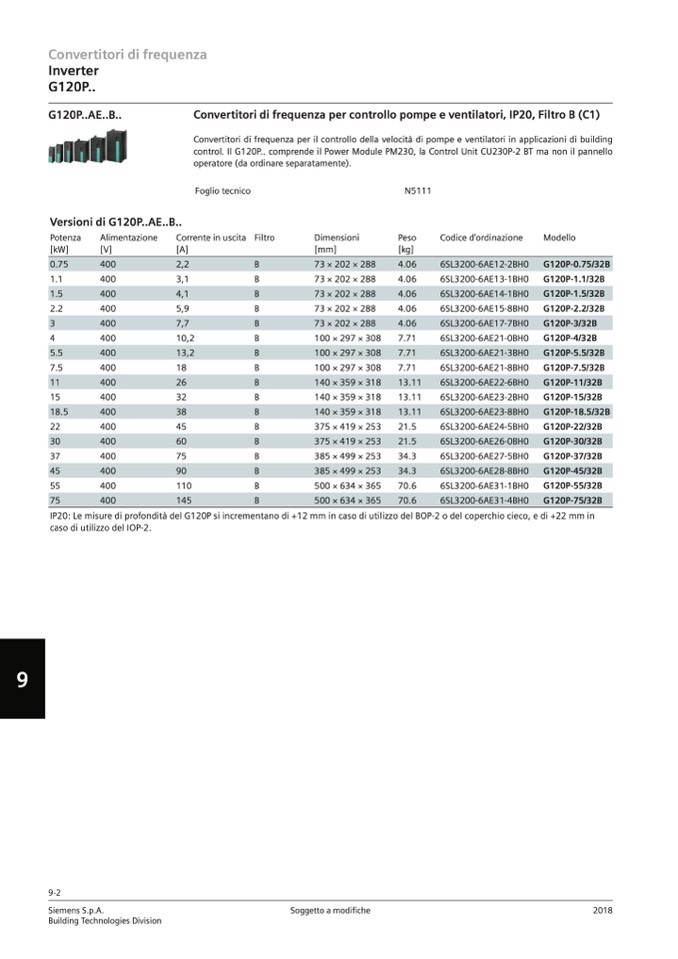 Versioni di G120P..AE..B..