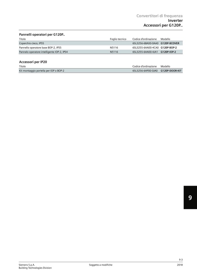 Pannelli operatori per G120P..