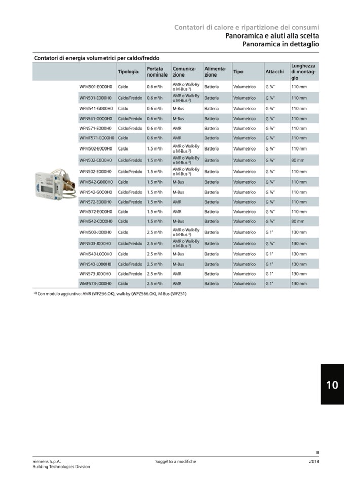 3) Con modulo aggiuntivo: AMR (WFZ56.OK), walk-by (WFZ566.OK), M-Bus (WFZ51)