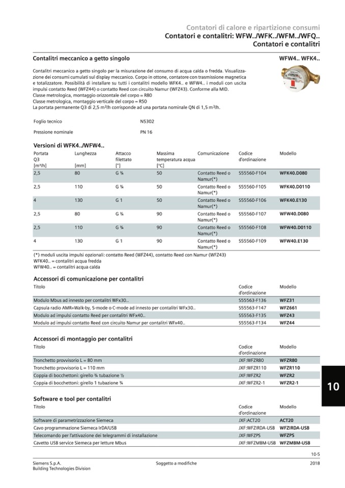 WFW40.. = contalitri acqua calda
