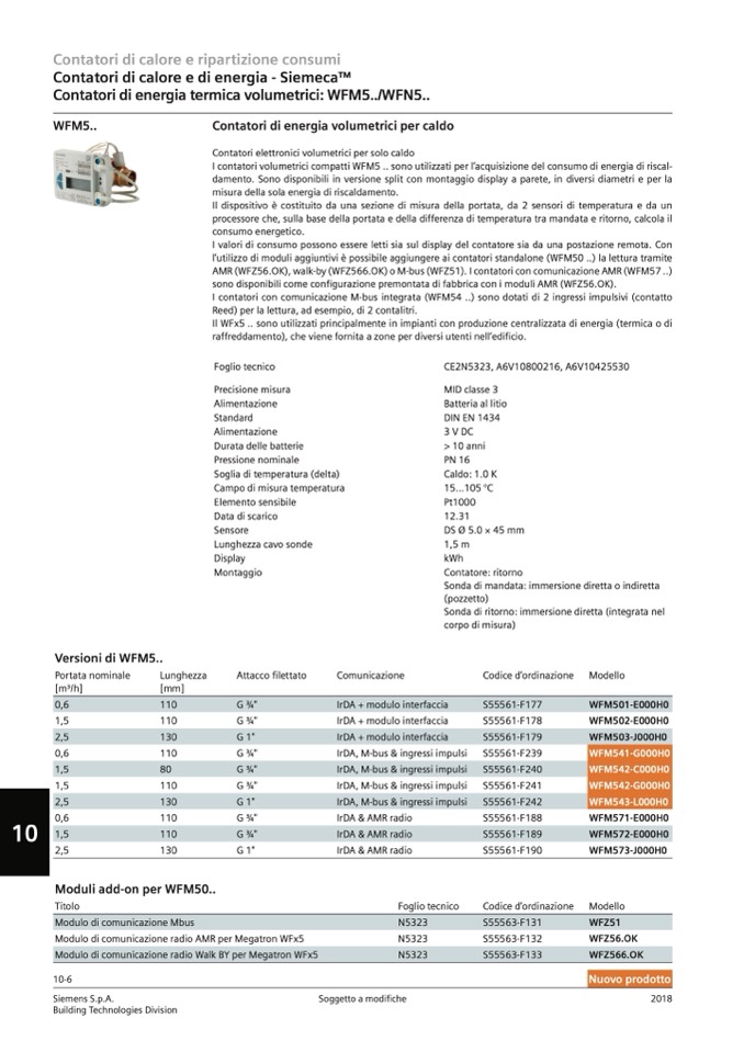 I contatori volumetrici compatti WFM5 .. sono utilizzati per l’acquisizione del consumo di energia di riscal-