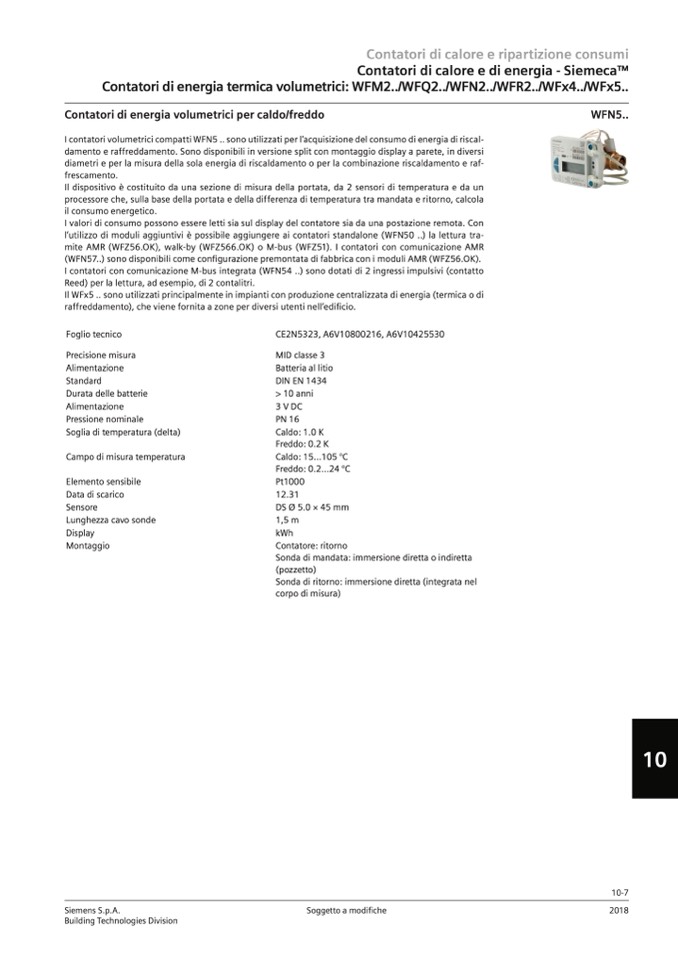 I contatori volumetrici compatti WFN5 .. sono utilizzati per l’acquisizione del consumo di energia di riscal-