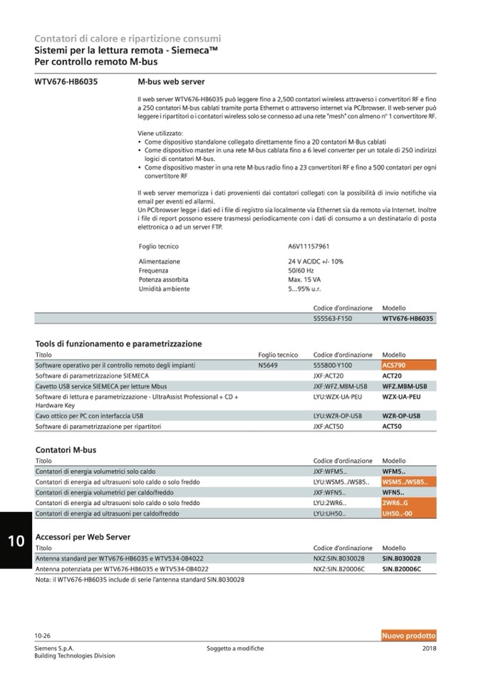 Il web server WTV676-HB6035 può leggere fino a 2,500 contatori wireless attraverso i convertitori RF e fino