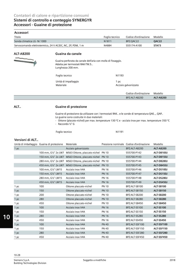Guaine di protezione da utilizzare con i termostati RAK.. e le sonde di temperatura QAE.., QAP..